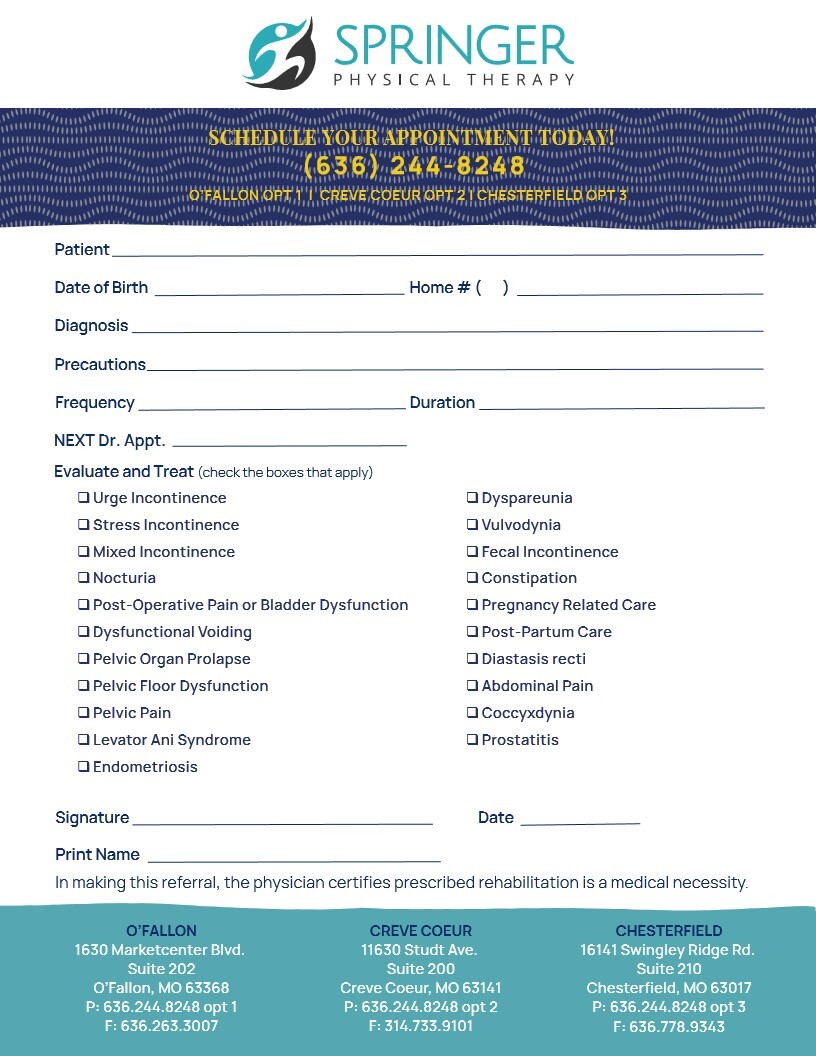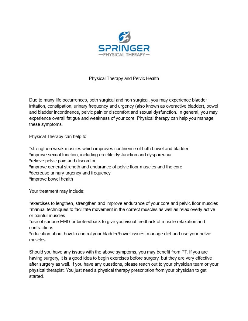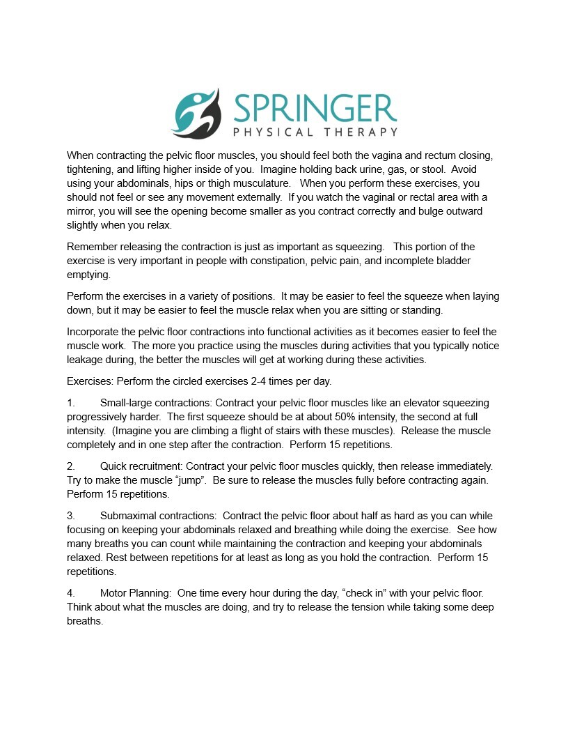 Also see documents below for Pelvic Floor Home Program and Exercises